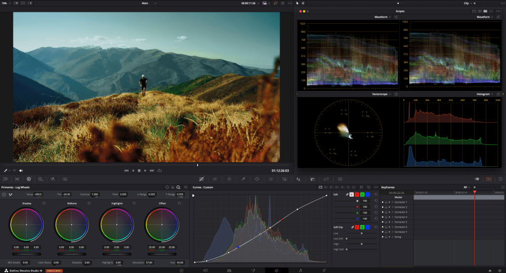 L’étape suivante du montage est la colorimétrie. Cela consiste à ajuster et harmoniser les couleurs des différentes séquences pour obtenir un rendu visuel uniforme et esthétique. Cela inclut la correction des couleurs (color correction) pour rectifier les écarts de couleur entre les prises, et l’étalonnage (color grading) pour créer une ambiance visuelle spécifique et renforcer l’impact émotionnel de la vidéo. Cette étape est aussi réalisée via Davinci.