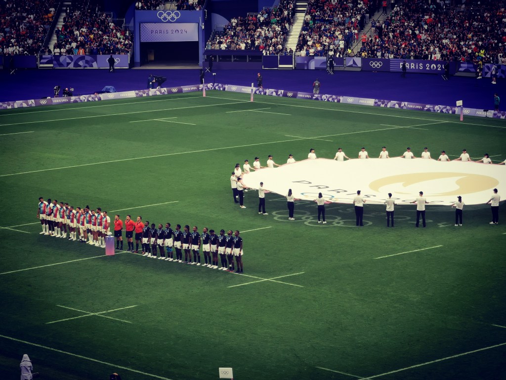 Premiers Jeux, premier jour, première épreuve. Après les péripéties de la veille pour atteindre Paris, me voici en route pour le Stade de France afin d’assister aux phases finales du tournoi de rugby à 7. Le tournoi avait déjà débuté avec les matchs de poules et les quarts de finale, se déroulant en préambule de l’ouverture officielle des JO. J’avais suivi ces premiers matchs à la télévision, une sorte de mise en bouche qui avait accentué mon enthousiasme pour ma venue à Paris.