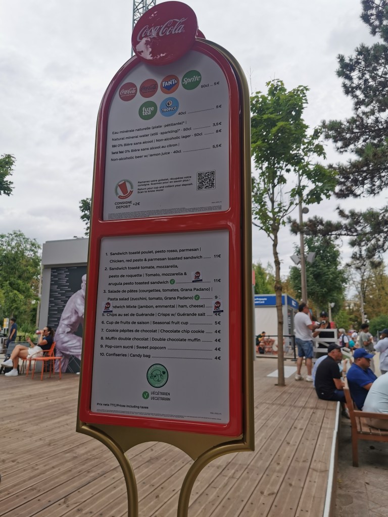 Sur chaque site, la buvette fonctionne avec des écocups consignées (2 €). Jusque-là, tout va bien. Mais la supercherie se dévoile lorsqu’on voit que les serveurs vident des bouteilles en plastique dans les écocups. L’aviron est le seul site où j’ai vu des bouteilles en verre, et non en plastique.